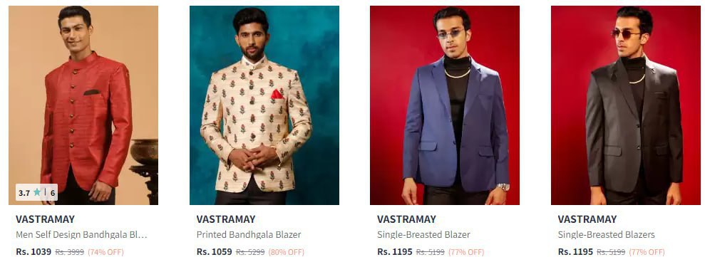 ❇️ Myntra : Vastramay Men Blazers Start @1039