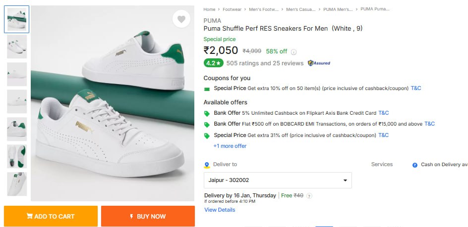 58% Off -Puma Shuffle Perf RES Sneakers For Men At Rs.2,050