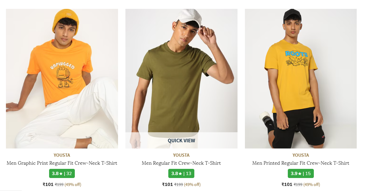 AJIO Loot : Men's T-shirt Starts @101