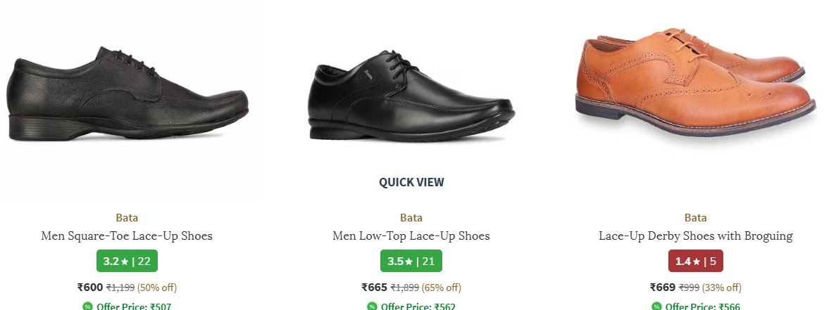 Ajio | Upto 65% Off on Bata Formal Lace Up Shoes Starting @ Just ₹ 600