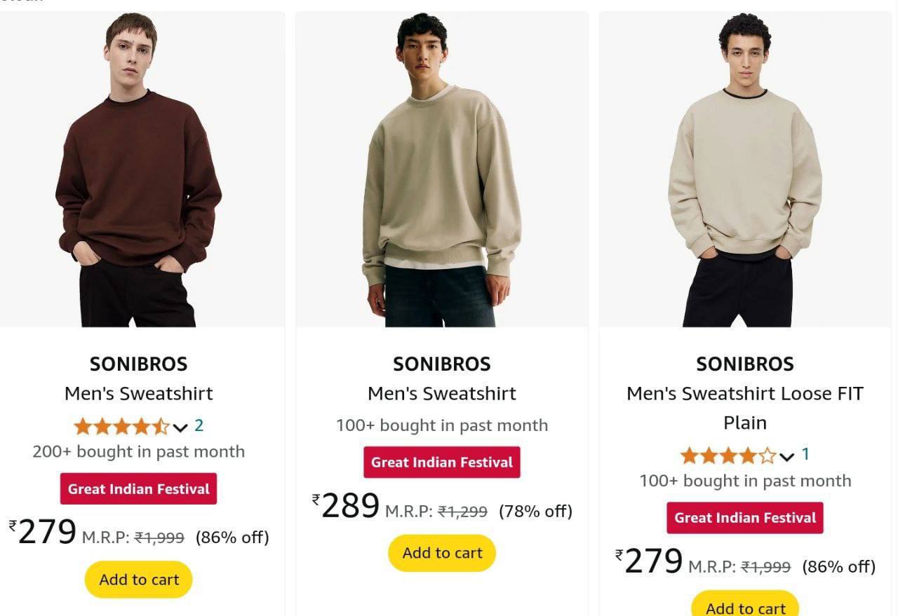 Amazon | 📌 Sweatshirts Upto 90% Off From ₹289 (17/10/24)
