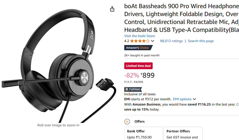 boAt BassHeads 900 Pro Wired Headphones @899 (22-11-24)