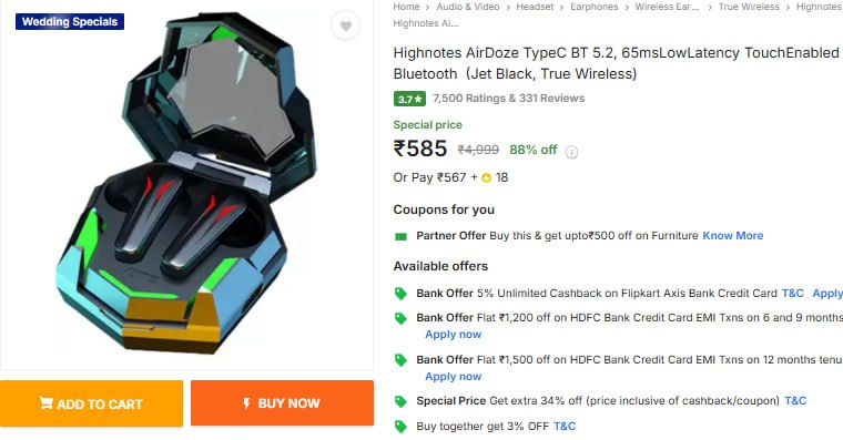 Highnotes AirDoze Gaming Earbuds AT Rs.585 (10-11-24)