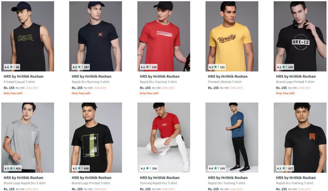 Hrx By Hrithik Roshan Tshirts starting @155 (28-11-24)