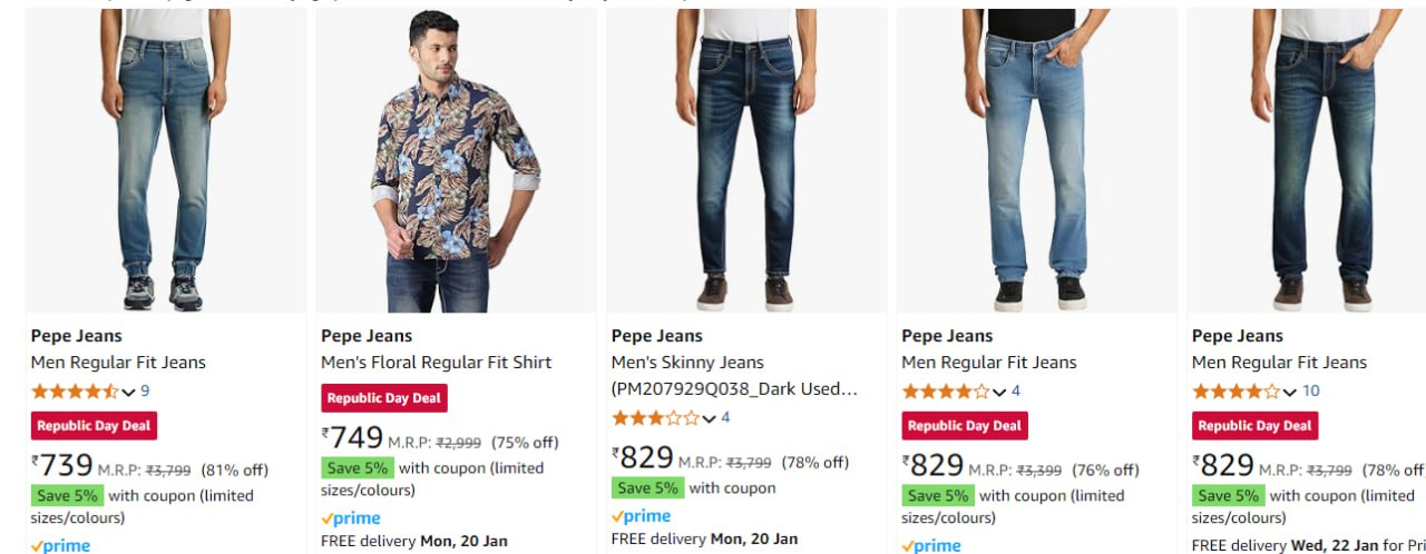 Loot : Pepe Jeans Upto 81% OFF + 5% Coupon