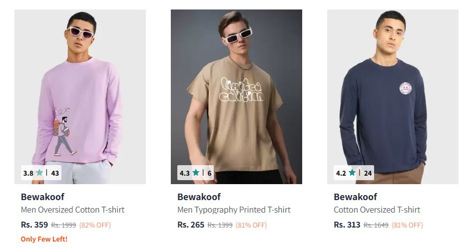 Myntra : Upto 82% Off On Bewakoof Clothing (15-11-24)