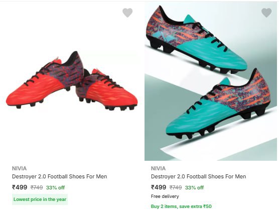 Nivia Mens Football Shoes upto 65% off starting From Rs.396