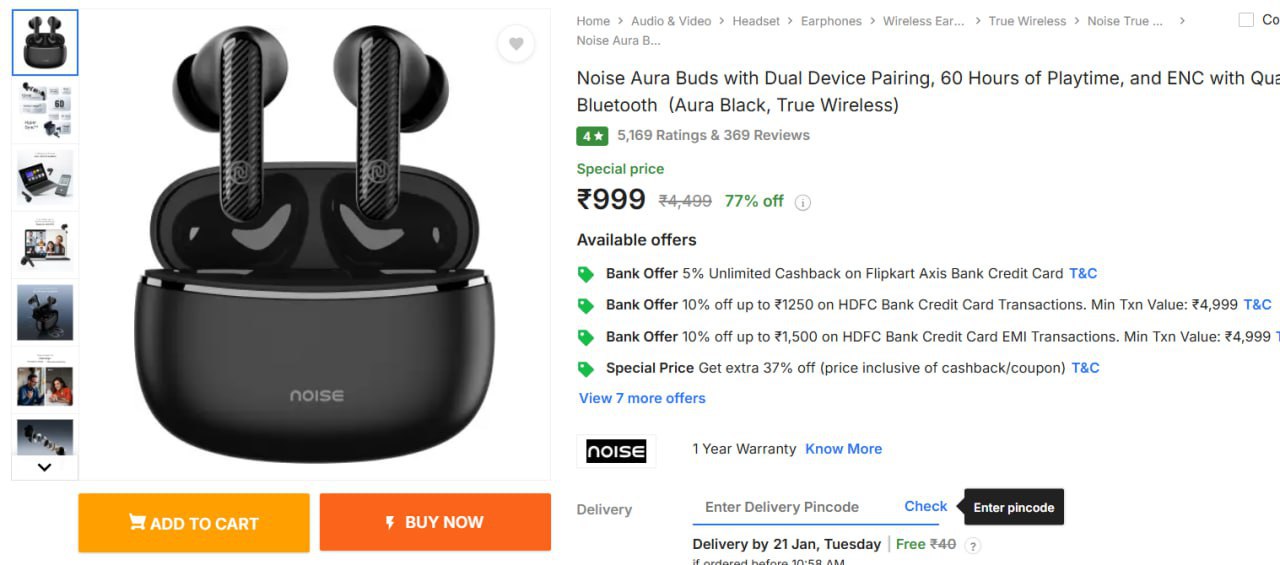 Noise Aura Buds with Dual Device Pairing Buds At Rs.999