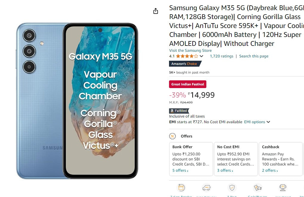 Samsung Galaxy M35 5G (6GB,128GB) at 13,299) (01/10/2024)