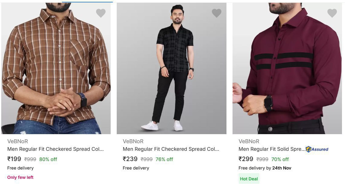 Vebnor Formal Shirts upto 80% Off starting At Rs.199 (22-11-24)