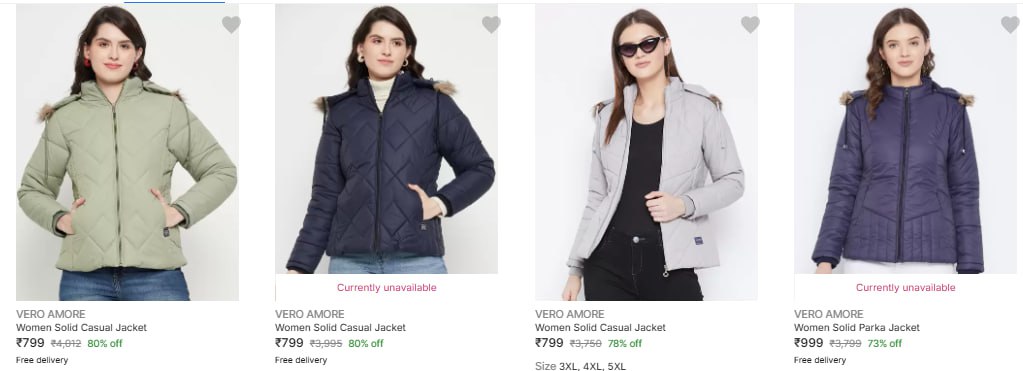 Women's Jackets upto 80% off starting From Rs.799