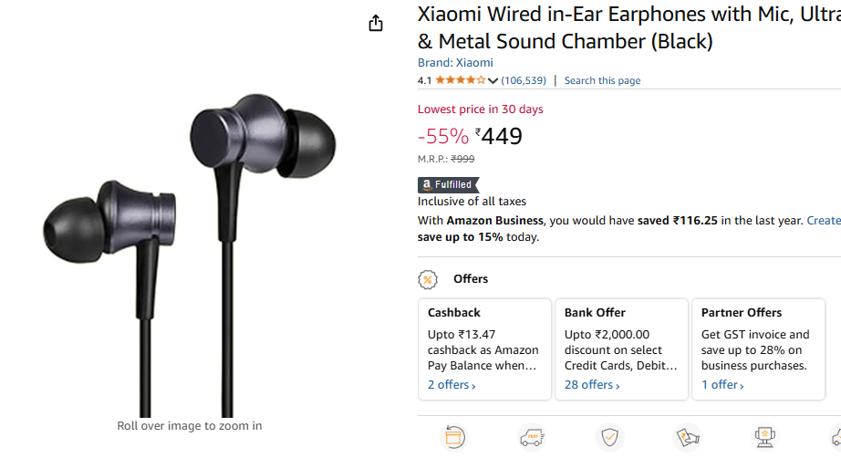 Xiaomi Wired in-Ear Earphones with Mic..Hurry Up